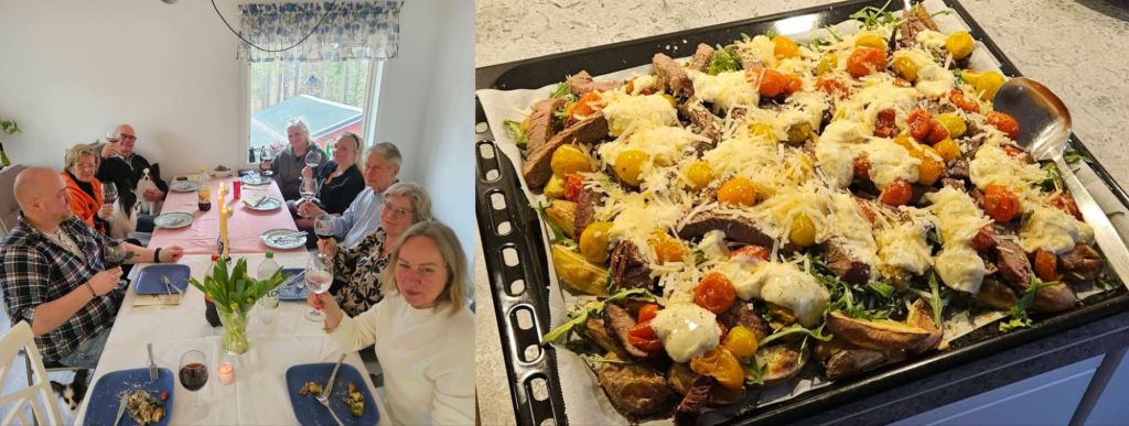 Förra helgen krockade jag i min planering och hade dubbelbokat mig för ovanlighetens skull. Vi skulle fira min syster och bror som fyller år, samt träffa ett gäng vi ska resa med i sommar. Det var klantigt av mig och denna gång fick jag ställa in firandet av mina syskon, de fyllde inte jämt som tur var och jag får fira dem en annan dag istället. Istället åkte Linda och jag för att plocka upp svärmor, och hon höll sig ganska lugn och sansad sen hela bilresan till norra sidan av vår stad. Haha! Jag retas bara lite med henne nu, men vi bor ju relativt nära varandra och passade på att samåka hem till Madde som bjöd på god mat och dryck. Dit kom även resten av gänget som ska resa med oss på det vi kallar för ”Norrlandsturnén” i sommar.