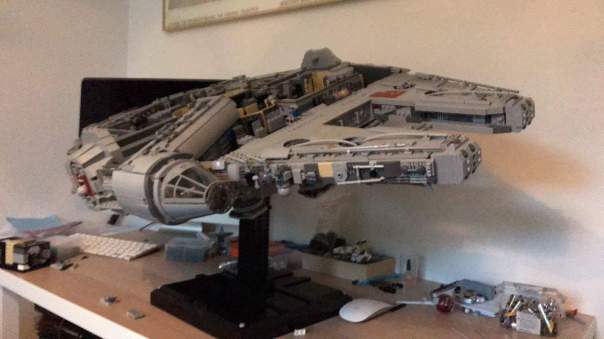 Detta var även början på Mogges kväll, som kommer att ha ett eget lite sidospår genom detta inlägg iform av små statusuppdateringar. Mogges status: Mycket glad och mingelvänlig. Efter ett tag hade han bytt ut flaskan mot en skål chips som han nu serverade till en eller två personer innan han själv fastnade lite länge med skålens innehåll. Det är viktigt att grunda, så är det ju förstås. Medan vi nu väntade på att maten skulle bli klar så fick Erik glänsa lite och visa sin enorma LEGO-skapelse, The Millenium Falcon.