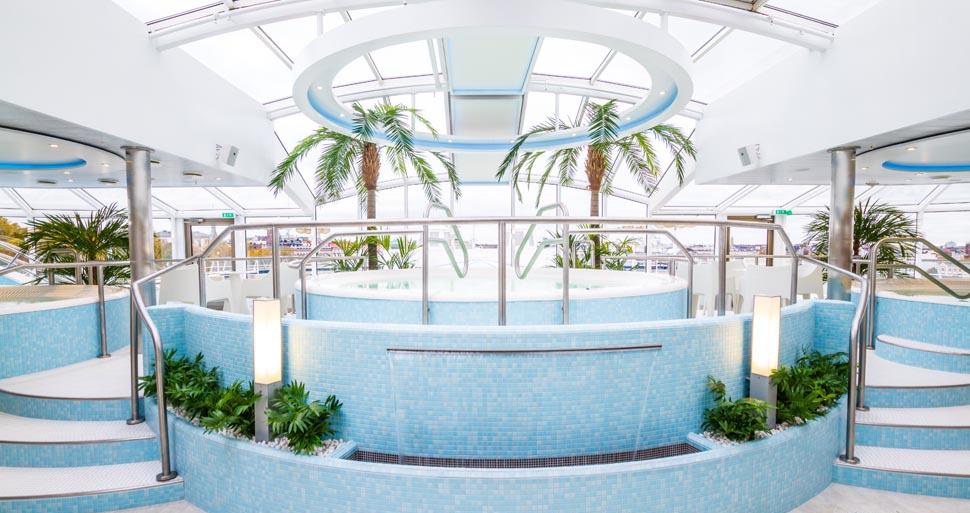 När vi var tillbaka på båten rusade vi upp till SPA-avdelningen för att inta bubbelbadet, det var otroligt skönt att värma sig lite efter en kall dag på stan. Självklart fick vi (dvs Tommy) kontakt med andra badare och hade lite lättsamma och roliga samtal, vi fick även lära oss den hårda vägen att drycker ej var tillåtna i bubbelpoolen! Ja man fick skäll helt enkelt, men vi hade en lång avkopplande stund innan vi kände oss nöjda och återvände tillbaka till hytten.