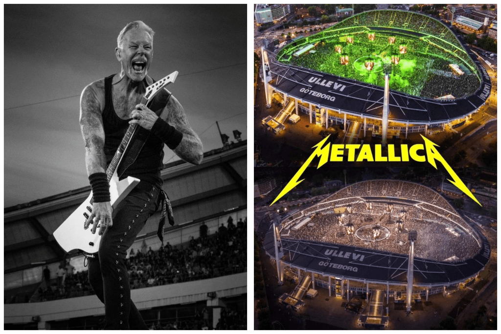 Vi hittade en uteservering vid hotellet som spelade Metallicas musik på hög volym, det verkade vara någon sorts förfest där med grillning som vi kände att vi ville ta del utav. Så vi köpte oss lite mat och hängde där en stund, sen började vi röra oss mot Ullevi. Det blir ett sådant härligt rus inombords när man hör låtar med Metallica spelas på i stort sett alla uteställen i stan där man passerar förbi, och gatorna fylls av glada fans som ser fram emot kvällens spelning. Nu var vi på plats i god tid så att vi skulle hinna se förbandet Epica uppträda, de fick ju snabbt hoppa in och ersätta Five Finger Death Punch som Linda nog mest av allt hade sett fram emot att få se. Jag hade gärna sett dem spela också, men det är ju främst hennes favoriter så det var synd att de inte kunde vara på plats. Vi tar sikte på dem nästa gång de kommer till Stockholm och försöker se dem då istället, nu fick vi istället en konsert med Epica som var helt okej. Jag lyssnade mycket på dem för typ 15-20 år sedan men kände inte igen någon av de låtar de spelade nu, sångerskan är ju skitbra men övriga musiken och growlandet gjorde det hela lite rörigt i våra öron. Vi gillade en av låtarna som heter ”The Final Lullaby” som vi ska lyssna lite mer på när vi kommit hem, sedan visades en otroligt våldsam och märklig reklam på de stora bildskärmarna för något sorts läskande vatten på burk som heter Liquid Death. Vi båda tittade på varandra och bara skrattade, vad tusan var det vi precis såg tänkte vi båda…