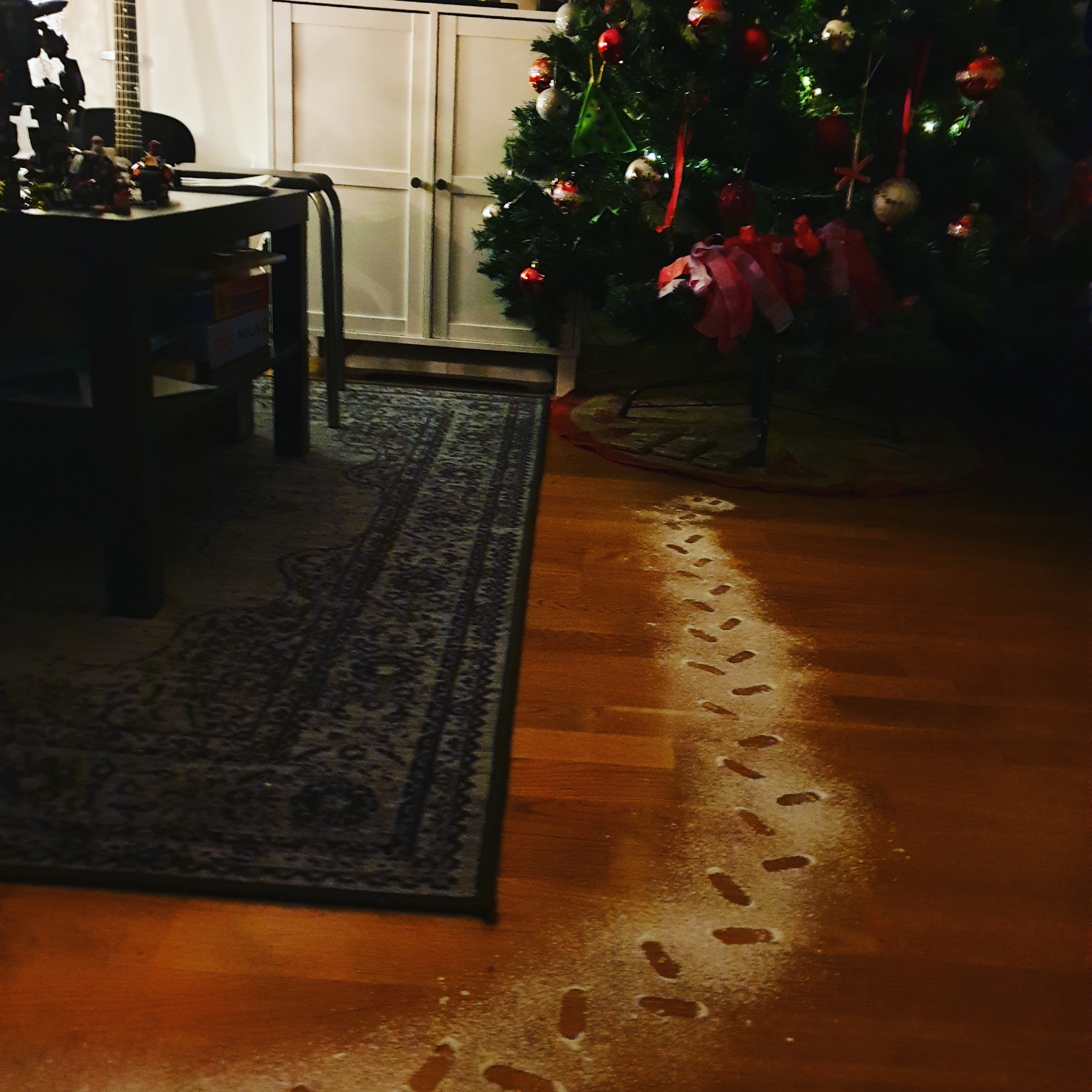 – Pappa, det är fullt med snö på vår julgran i vardagsrummet. Mumlade han nästan i sömnen.