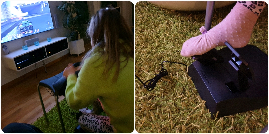 Freja har haft problem med sin mage så vi inledde sportlovet lite lugnare än planerat, men hon blev piggare för varje dag. Vi har dock sysselsatt oss med enklare saker hemma och inte varit ute på äventyr på grund av detta, så vi har bakat och pysslat en hel del. Sedan så köpte jag en ratt till barnens Playstation som jag tänkte kunde höja underhållningen ett snäpp när de spelar sina spel, det blev en succé! Det var annorlunda och kanske lite svårt i början, men inlevelsen blev en helt annan så detta gillade de väldigt mycket. De valde att köra en Ford Mustang, för en sådan bil har ju farfar. Hur det gick för pappan när han trodde sig ”visa hur man ska göra” kan vi lämna utanför detta, men vi kan konstatera att bara för att man har körkort och kan köra bil på riktigt så behöver det nödvändigtvis inte innebära att man är ett riktigt ess bakom ratten när man spelar TV-spel…