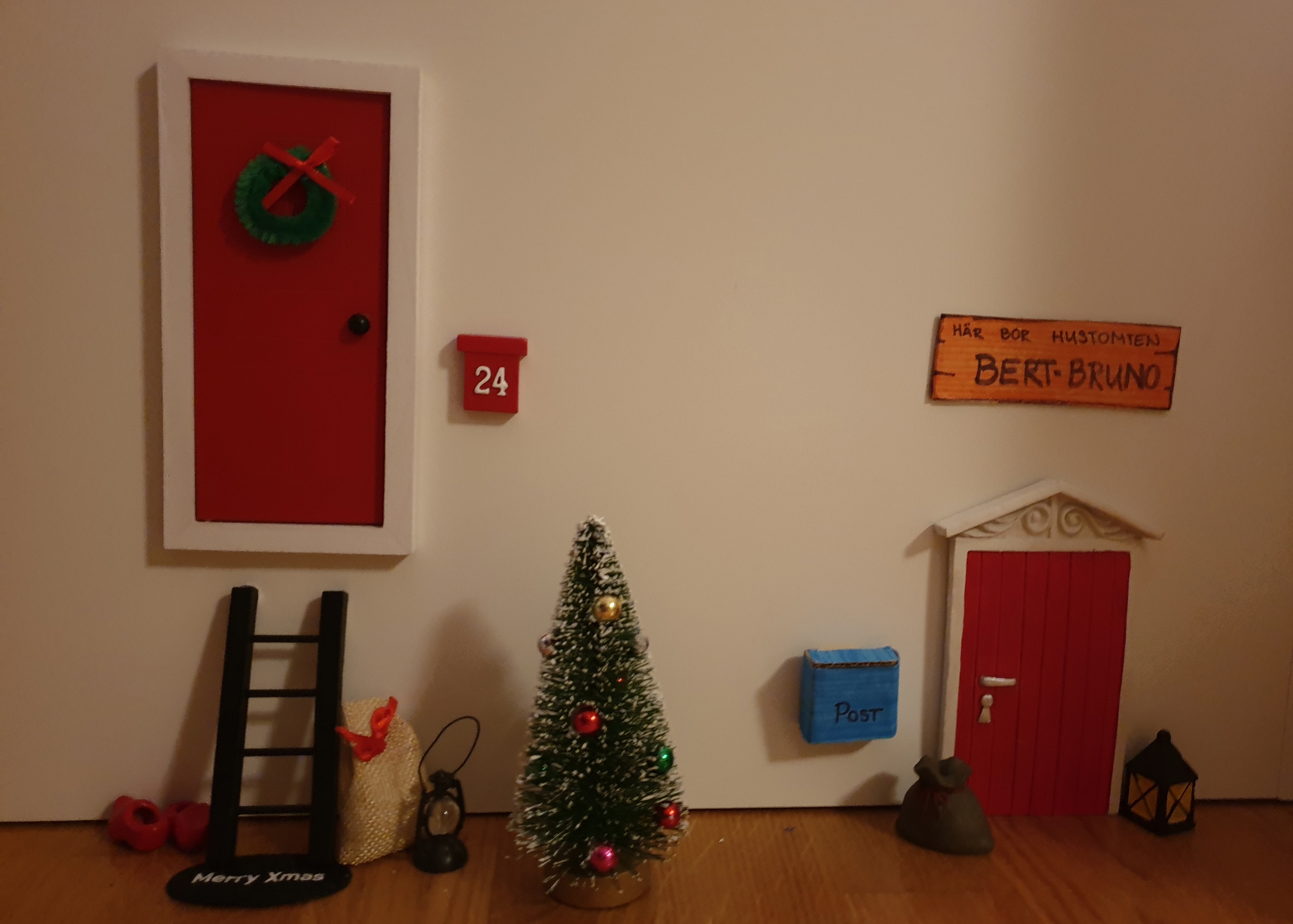 – Pappa! Det har flyttat in en ny tomtenisse hos oss! Ropade hon glatt och nu kom även tvillingarna nyfiket springandes för att se vad som pågick.